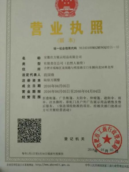 九方簡(jiǎn)介 九方廣告帳篷廠是一家專業(yè)設(shè)計(jì),生產(chǎn),銷售及售后為一體綜合性展示服務(wù)用品廠。我廠以“不放心,找九方”的九大放心理論為企業(yè)發(fā)展宗旨為九方的客戶做最完美的服務(wù)。公司于2010年注冊(cè)九方商標(biāo),九方廣告帳篷的主要產(chǎn)品有:折疊帳篷,廣告帳篷,太陽(yáng)傘,篷陽(yáng)傘,崗?fù)悖ピ簜悖蛊欤镀欤⑺鞐U等九大系列,三百多個(gè)品種。充分滿足客戶對(duì)于廣告展示的要求。九方折疊帳篷繼續(xù)以客戶為中心,全力打造“不放心,找九方”的九大放心理論(誠(chéng)信放心,設(shè)計(jì)放心,選材放心,做工放心,制作放心,印刷放心,包裝放心,運(yùn)輸放心,售后放心。)九方注冊(cè)金額600萬(wàn)元人民幣,公司“為客戶創(chuàng)造展示價(jià)值而驕傲”為經(jīng)營(yíng)理念,以“不放心,找九方”的九大放心理論為企業(yè)發(fā)展宗旨為九方的客戶做最完美的服務(wù)。公司擁有專業(yè)的生產(chǎn)部人員135人和十幾名專業(yè)設(shè)計(jì)銷售電商部人員。 九方企業(yè)產(chǎn)品 九方廣告帳篷的主要產(chǎn)品有:折疊帳篷,廣告帳篷,太陽(yáng)傘,篷陽(yáng)傘,崗?fù)悖ピ簜悖?旗,刀旗,注水旗桿等九大系列,三百多個(gè)品種。充分滿足客戶對(duì)于廣告展示的要求。 九方廣告帳篷傾心打造以折疊帳篷,廣告帳篷為核心的展示產(chǎn)品。根據(jù)市場(chǎng)需求規(guī)格可以分為以下常規(guī)尺寸:1.5米*1.5米,2米*2米,2米*3米,2米*4米,2.5*2.5米,2.5*3.75米,3米*3米,3米*4米,3米*4.5米,3米*6米等十余種規(guī)格一百七十多種款式;同時(shí)九方在布面選材上嚴(yán)格按經(jīng)久耐用,易著色,強(qiáng)調(diào)印刷效果的原則,采用加厚,加密,420D和600D為主材質(zhì),同時(shí)精選以(白,紅,藍(lán),綠,黃,橙,天蘭,梅紅,酒紅,紫,青,默綠,海信藍(lán))等一百多種顏色供你選擇。 九方太陽(yáng)傘以廣告宣傳太陽(yáng)傘,篷陽(yáng)傘為主,常用的規(guī)格在半徑1.2米和半徑1.5米,1.8米,在骨架方面采8K單骨結(jié)構(gòu)和8K雙骨加厚結(jié)構(gòu)及12K鋼骨為主。布面以精細(xì)加密太陽(yáng)傘氣模布和太陽(yáng)傘防曬布為主,布色以紅,白,藍(lán),黃,綠,橙,天蘭,紫,青,酒紅,梅紅等一百多種常用顏色可供選擇。 另外;九方在主打產(chǎn)品的基礎(chǔ)上又?jǐn)U展了崗?fù)悖ピ簜悖蛊欤镀欤⑺鞐U等產(chǎn)品滿足客戶更深層次的需求。 九方文化 企業(yè)宣言:用感恩之心回饋九方用戶。 質(zhì)量理念:做足細(xì)節(jié),追求極致,打造“不放心,找九方”百分百放心平臺(tái)。 企業(yè)精神:愛(ài)學(xué)習(xí) 求分享 講奉獻(xiàn) 共成長(zhǎng) 品牌目標(biāo):打造展示用品行業(yè)的中國(guó)名牌—-九方。 企業(yè)的價(jià)值觀:為客戶創(chuàng)造展示價(jià)值而驕傲。