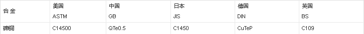 碲和銅的合金,含0.4-0.7%碲的碲銅具有良好的切削加工性能;含50%碲和50%銅的碲化銅用作中間合金。產品標準ASTM B301/B301M-13