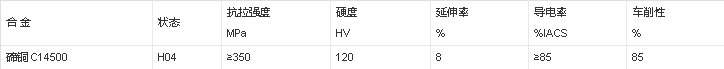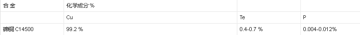 碲銅 ( C14500 )合金具有極好的易切削性能和優良的導電、導熱性能,以及抗腐蝕性能; 是高銅合金中切削性能最好的銅合金材料;而且冷熱加工性能較好,可鍛造、鑄造、擠壓拉制、沖制模壓、鐓煅。