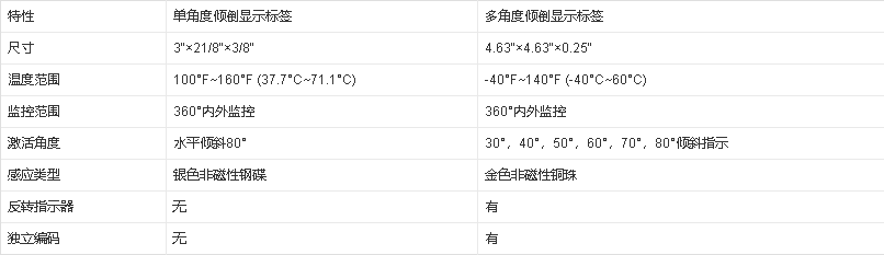 單角度防傾斜標簽顧名思義可指示單一傾斜角度。