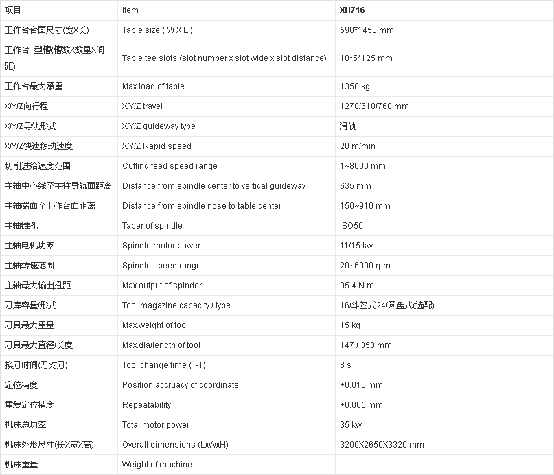 注:XH716可選滾動(dòng)、滑軌復(fù)合導(dǎo)軌,進(jìn)給速度可達(dá)24m/min。