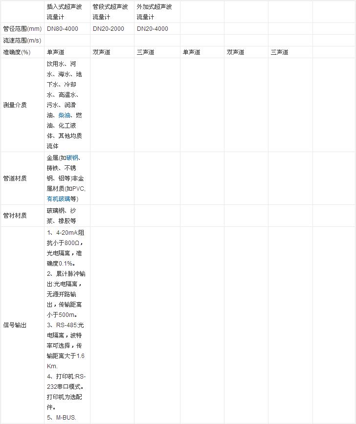 超聲波流量計主要技術指標: