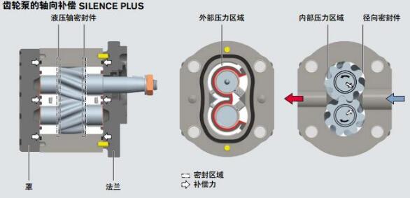 解決方法:端面間隙補(bǔ)償采用靜壓平衡措施,在齒輪和蓋板之間增加一個補(bǔ)償零件,如浮動軸套、浮動側(cè)板。