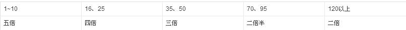 同樣,2.5平方毫米的導線位置在五倍的始端,實際便不止五倍(最大可達到20安以上),