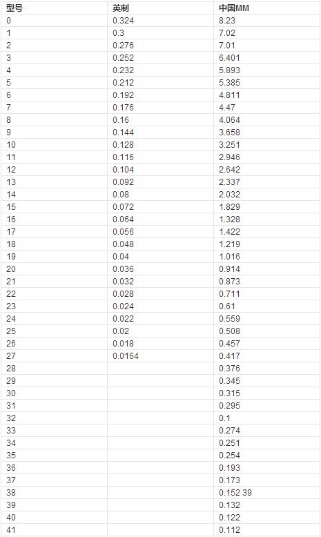 規格對照