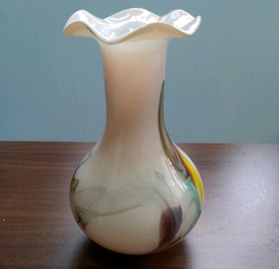 有人工和機械吹制成型兩種方式。人工成型時,手持吹管從坩堝內或池窯取料口處挑料,在鐵模或木模中吹成器形。光滑圓形制品用轉吹法;表面有凸凹圖案花紋或形狀不成圓形的制品用靜吹法。先挑無色料吹成小泡,再用小泡挑顏色料或乳濁料吹成器形的稱為套料吹制。用顏色易熔料粒沾在乳濁套料上,各色自然熔流,可吹成自然景器皿;在顏色料上沾帶狀乳濁料,可吹成拉絲器皿。機械成型用于吹制大批量制品。吹制機受料后自動合鐵模吹成器形,脫模后去除帽口即成器皿。還可采用壓-吹成型,先將料沖成小泡(雛形),再繼續吹制成器形。它比單純用吹制機吹制效率高,質量好。