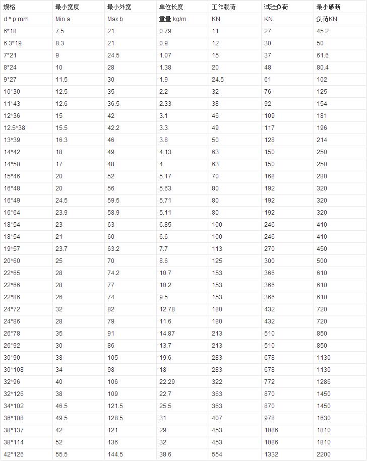 (2)起重鏈條規格
