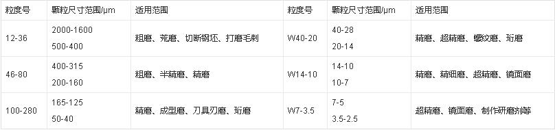 磨料粒度:分 16 、 20 、 24 、 30 、 36 、 40 、 46 、 54 、 60 、 70 、 80 、 90 、 100 、 120 、 150 、 180 、 220 .240(以細稱為微粉)