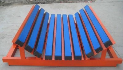 緩沖床主要用于替代緩沖托輥,緩沖床由緩沖條組成,而緩沖條主要應用優良的高彈性特種橡膠層充分有效吸收了物料下落時的沖擊力,大大降低了物料下落時對輸送帶的沖擊,真正的改善了落料點的受力狀況。