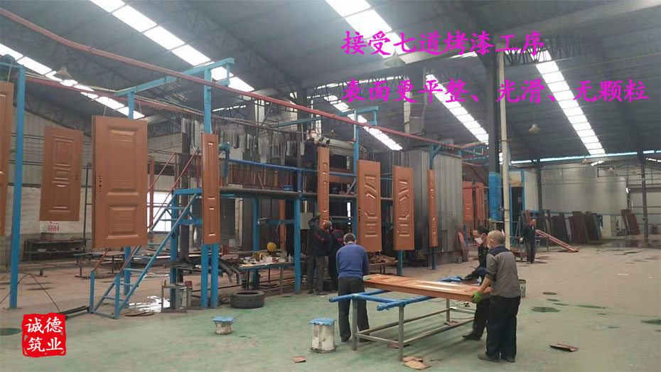 ⑵門扇:門扇四周無焊接點,鉚釘、且采用的是咬合結構,防開裂;門扇板材厚度是0.8mm,購買時一定要特別強調(diào)鋼板的厚度,可做抽檢。