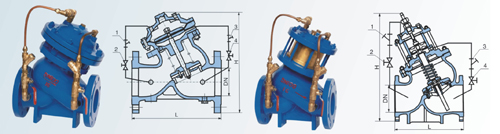 jd745x型多功能水利控制閥結構圖片 jd745x型多功能水利控制閥安裝示意圖 jd745x型多功能水利控制閥產品用途 jd745x型 pn10~pn25多功能水力控制安裝在有高層建筑給水系統的水泵出口管道上,防止介質倒流,防止水錘及水擊現象的產生。一閥兼具電動閥、逆止閥和水錘消除器三種功能,可有效地提高供水系統的安全可靠性。 jd745x型多功能水利控制閥產品特點 1、消除水錘效果好。將緩開、速閉、緩閉消除水錘的技術原理一體化,防止開泵水錘和停泵水錘的產生 2、操作方便。只需操作水泵電機啟閉按鈕,閥門即按照水泵操作規程實現自動開閉 3、節能效果好。閥體采用了全通道流線型直流式設計,壓力損失小,流量大,且體積小,重量輕 jd745x型多功能水利控制閥主要外形和連接尺寸