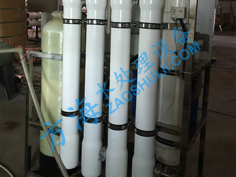 反滲透流程以半反滲透膜為基礎(chǔ),它使水流在非常高的壓強(qiáng)下通過,同時(shí)阻擋溶解固體,比如礦物質(zhì)、鹽 或有機(jī)化合物。反滲透膜包括粘合在多孔基座上的一塊聚合體薄層,并螺旋形盤繞在塑料管道上。與微濾膜和超濾膜不同,反滲透膜并不規(guī)定孔徑。然而這些細(xì)孔足以阻擋最小的細(xì)菌和病毒通過。