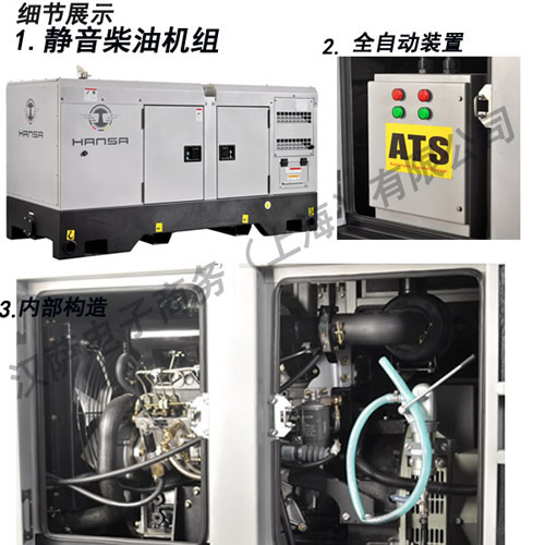4.靜音箱上有獨立輸出開關盒,便于電纜的接駁(特別適合于工程施工,租賃);靜音型柴油汽油發電機組