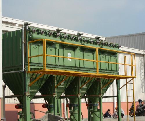 含塵氣體進入除塵器已擴大的灰斗進行預收塵,通過導流板均布于各條濾袋之間,把粉 塵lanjie在濾袋外表面,為使設備阻力不超過1200pa,高壓氣體經電磁閥產生脈噴,使氣包內壓縮空氣(0.5~0.7mpa),由噴吹管孔眼噴出(稱一次風)通過文氏管誘導數倍于一次風的周圍空氣(稱二次風)進入濾袋在瞬間急劇膨脹,并伴隨著氣流的反方向作用抖落粉 塵,達到清灰的目的。使用微機自動控制裝置,根據粉 塵可以自行調整清灰周期和脈噴時間,使收塵器在一定的范圍內運行。