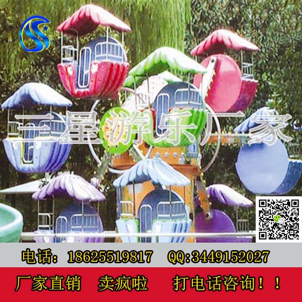 觀覽車游樂設備又稱之為兒童摩天輪,是根據摩天輪的造型而設計的,專門為兒童量身定做的。每面大盤上懸掛5個花式座艙。游客乘坐在座艙里慢慢的往上旋轉上升,可以從高處俯瞰四周景色,使游客樂而忘返。觀覽車游樂設備座艙造型可根據客戶需求和場地提供,搭配。是游客們最理想的游樂。
