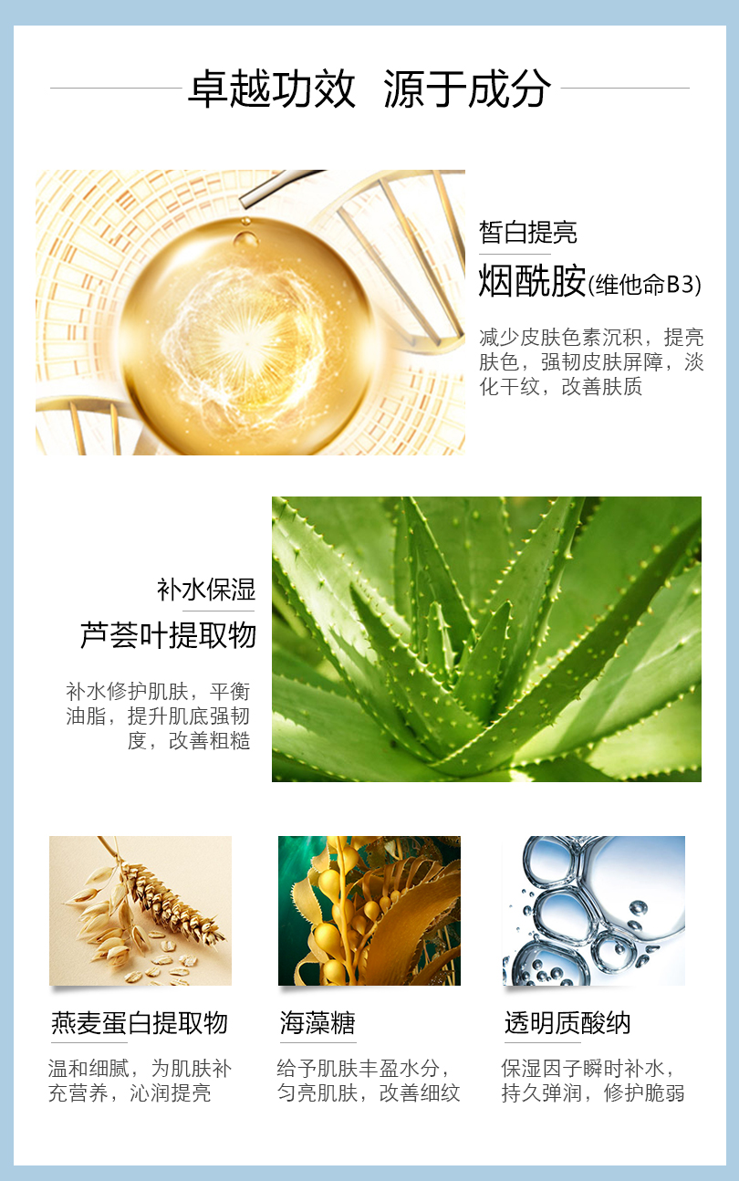 適用膚質:適合于肌膚無光澤、暗沉、膚色不均、取疵的肌膚,提亮膚色。